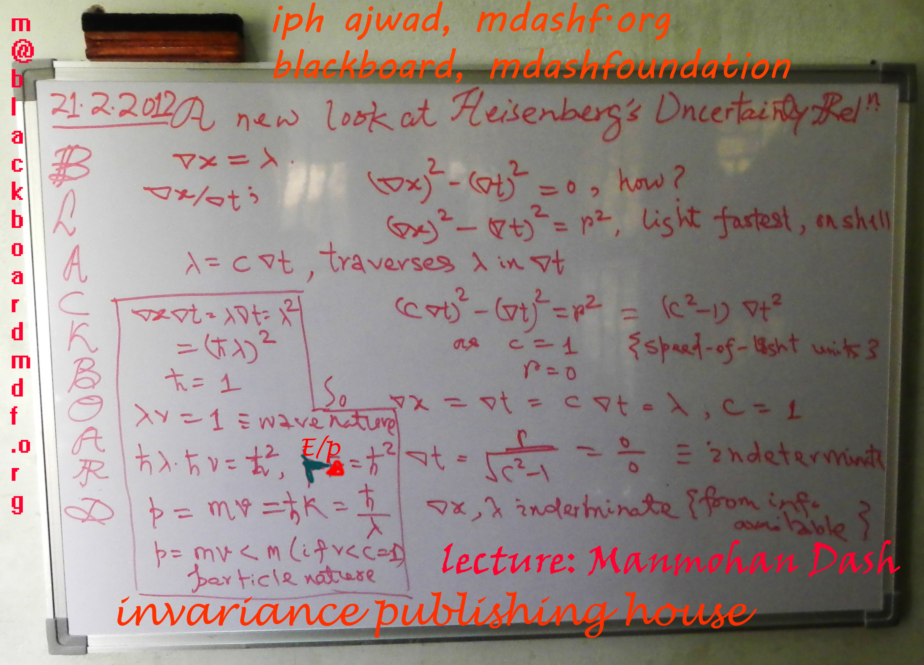 Heisenberg’s Uncertainty Principle from wave-particle duality. The wave-particle duality states that any mechanical object can exhibit both wave and particle behavior and the complementarity priniciple states that they can not both be observed simultaneously. That is the wave and teh particle nature are only exclusive ly observed given a specific time or time window, the window being consistent with Heisenberg’s uncertainty prinicples of which there are more than 3 forms. But only 3 forms of these exhibit a simple relation from which other-variable relationships can be derived much in the same way kinetic energy is derived from mass and speed of a particle. The intention of writing this blog for me is to show how a basic reasoning can be applied qualitatively to obtain a semi-quantitative or intuitive relation between variables to extend an inequality relation between these variables. I will show here only for energy and time uncertainty relationship. From the wave particle duality it is clear that any entity/object/process has a particle or wave character both in the same system but not in the parametric sense of same time. Once time is chosen/defined as a specific kinematic parameter wrt that time the wave and particle nature are not simultaneously observed. So let us consider a particle, say a neutrino or an electron. This particle has a well specified physical location in space. This is the mean position therefore of the particle. This mean has a zero distribution for a classical particle but for a quantum mechanical particle or system the distribution is not zero. Now the particle also being a wave it has a characteristic of wavelength. This wavelength therefore gives the extent of deviation of the particle’s position from its mean location. The wavelength is lambda.