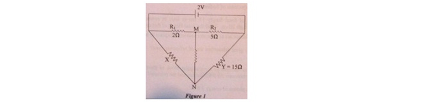 (iii). Find the value of resistance X in the circuit below so that the junction M and N are at the same potential. (See Figure 1 below)